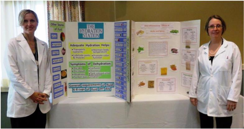 Pictured, from left, are Nutrition Services Dietitians Donna Manfredo, RD, and Carolyn McAdams, RD, who provided employees with tips on healthy food ...