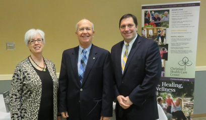 Pictured, from left, are Rev. Phyllis Palsma, MDiv, Christian Health (CHCC) Chaplain/Pastoral Resource Coordinator; Robert Hunt, PhD, special guest ...