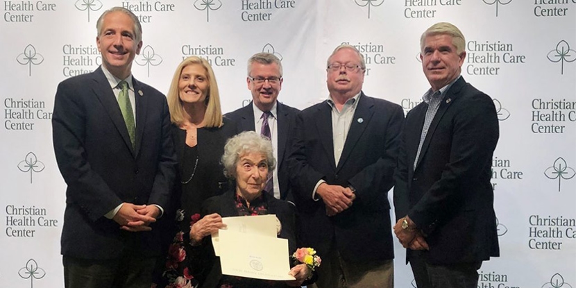Pictured, from left, are Douglas A. Struyk, CPA, LNHA, Christian Health (CHCC) President and CEO; Aimee Restifo, LCSW, CHCC Admissions Case Manager; ...